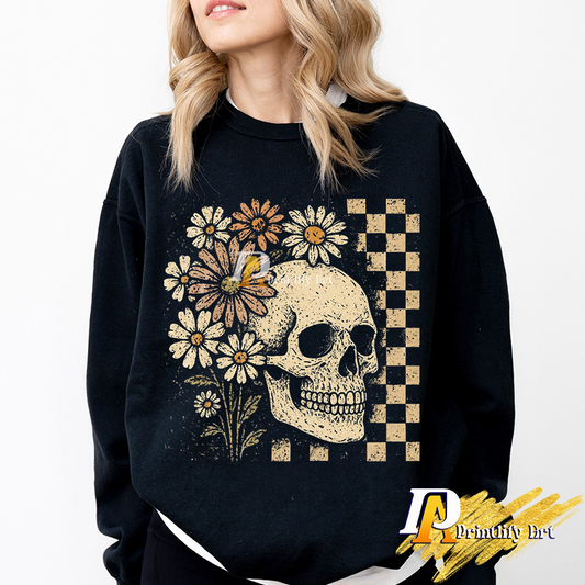 Crow Raven Halloween Png, Funny Gothic Floral Checkered Spooky Design