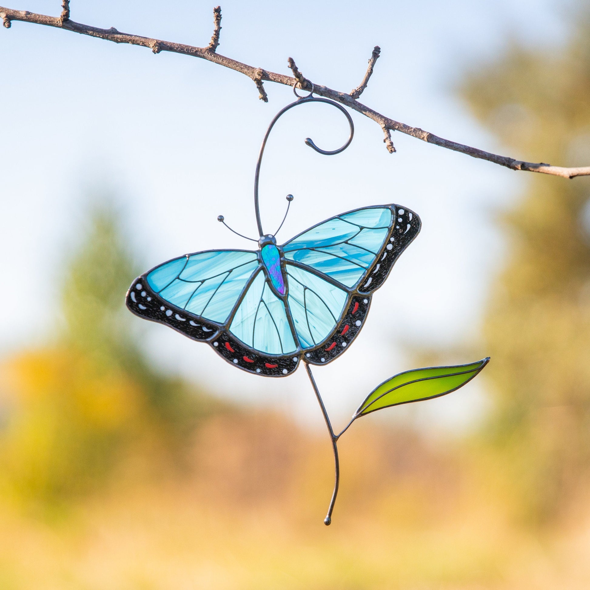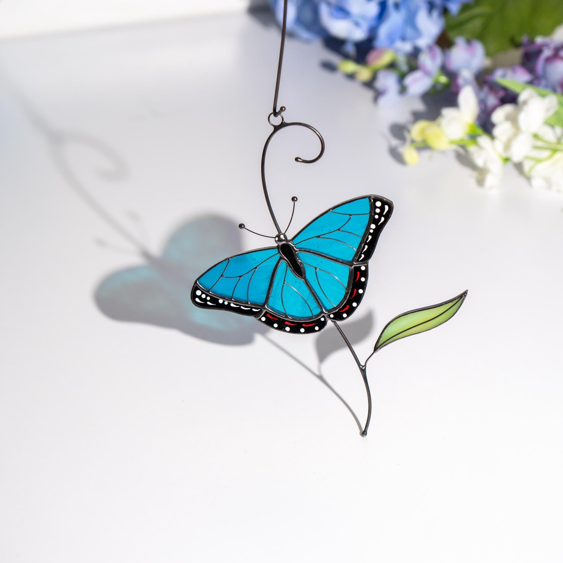 Blue moprho Butterfly stained glass window hangings