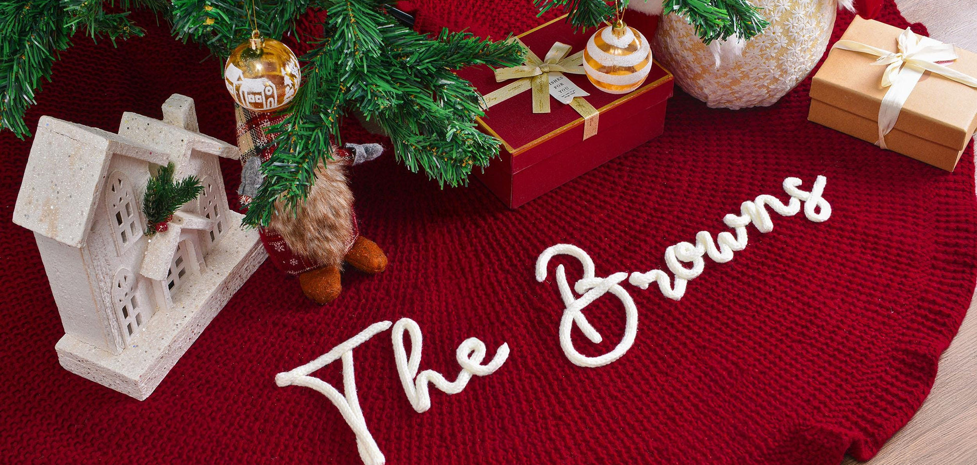 Tired of disposable holiday decor? Meet the reusable, personalized tree skirt that will lovingly accompany your family’s Christmas tree year after year.