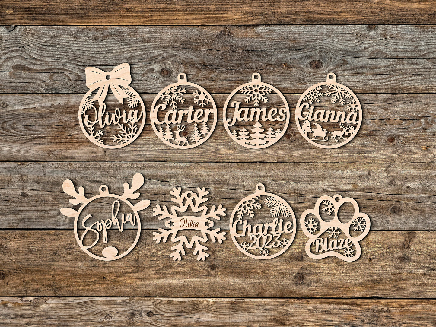 Elevate your holiday celebrations with our exquisite Personalized Wooden Christmas Ornaments. Crafted with meticulous attention to detail, these wooden holiday decorations are designed to bring joy to your home. Start a new tradition or continue a cherished one with our diverse collection, featuring 8 enchanting styles to choose from.