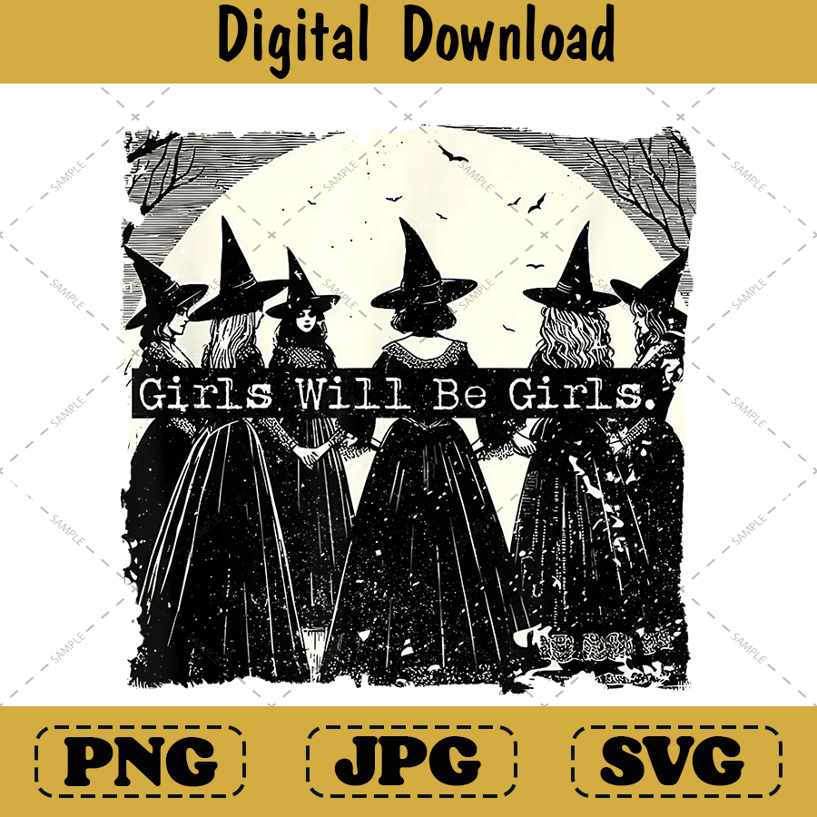 Girls Will Be Girls Witch Witchy Vibes Halloween png Design