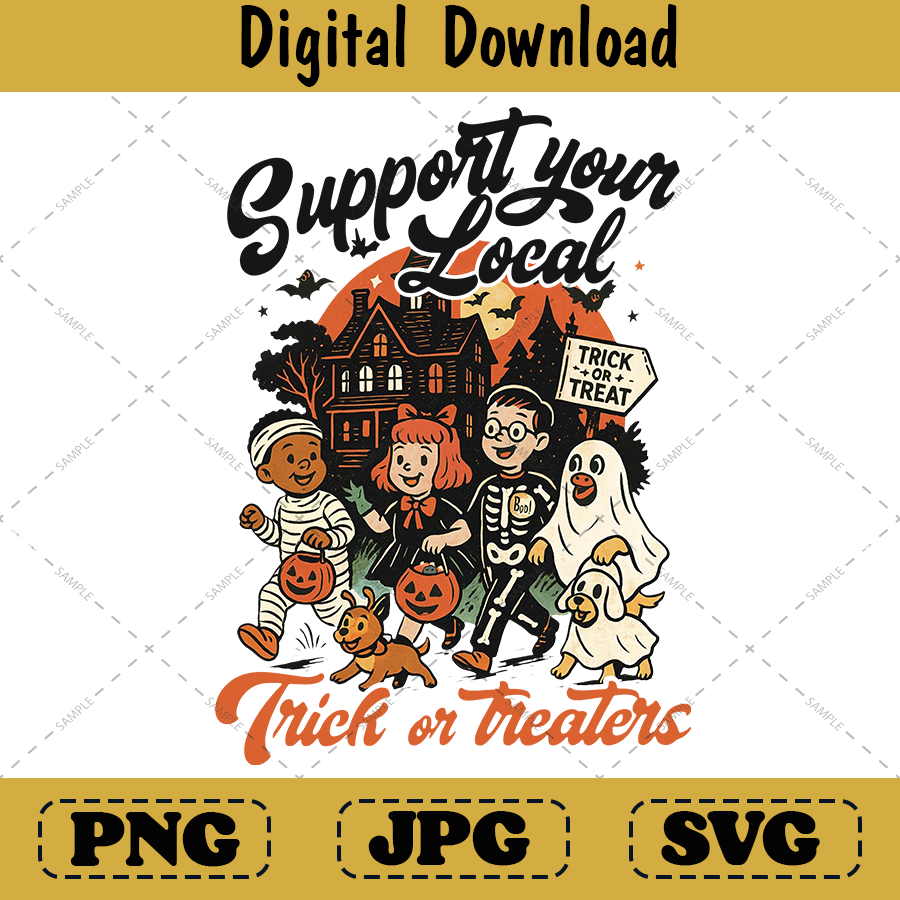 Support Local Trick or Treaters Halloween Png, Retro Vintage Shirt Design