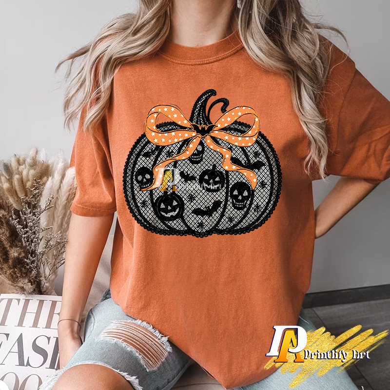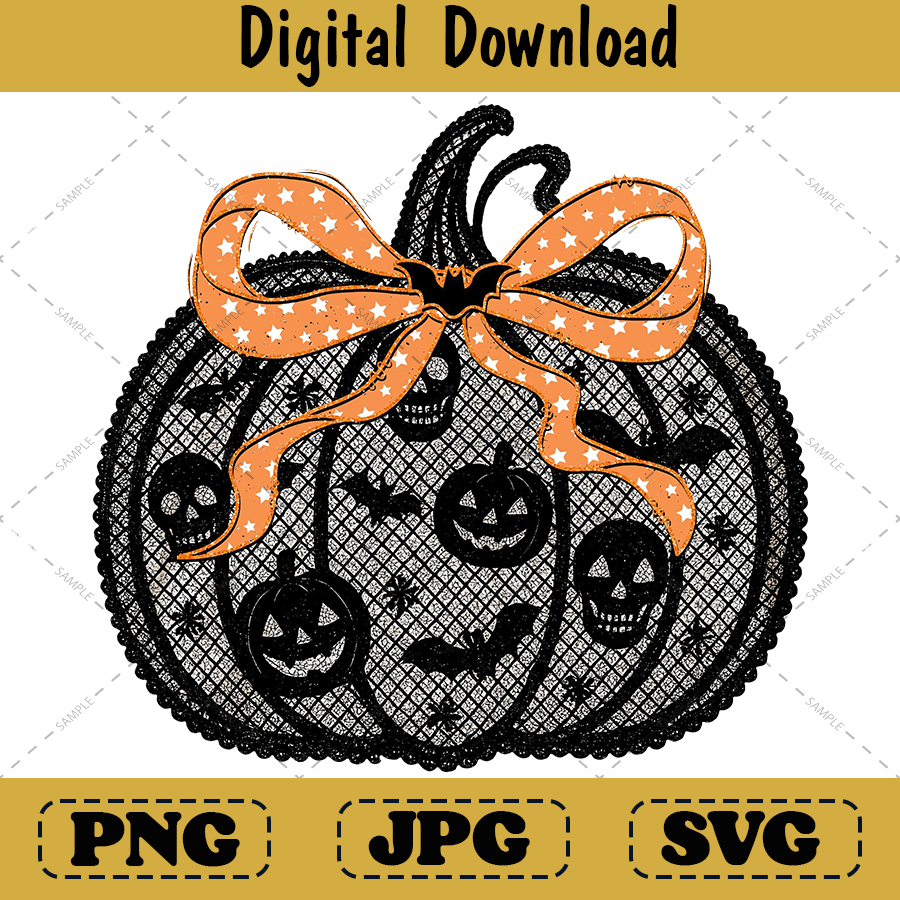 Black Lace Pumpkin Halloween Png, Coquette Girly Fall Design