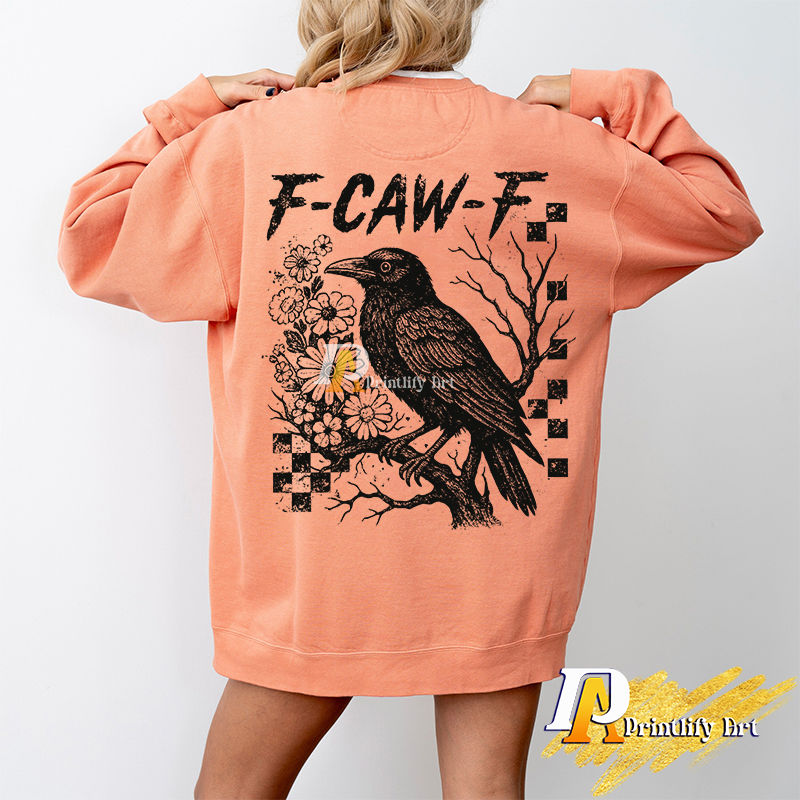 Crow Raven Halloween Png, Funny Gothic Floral Checkered Spooky Design