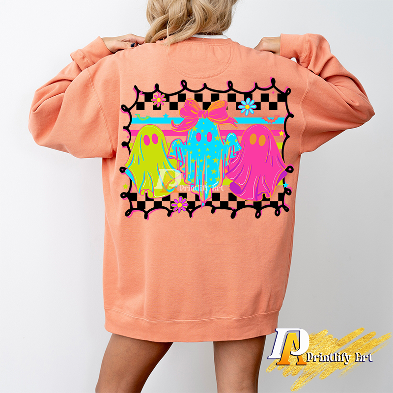 Checkered Neon Ghost Png, Coquette Halloween Shirt Sublimation