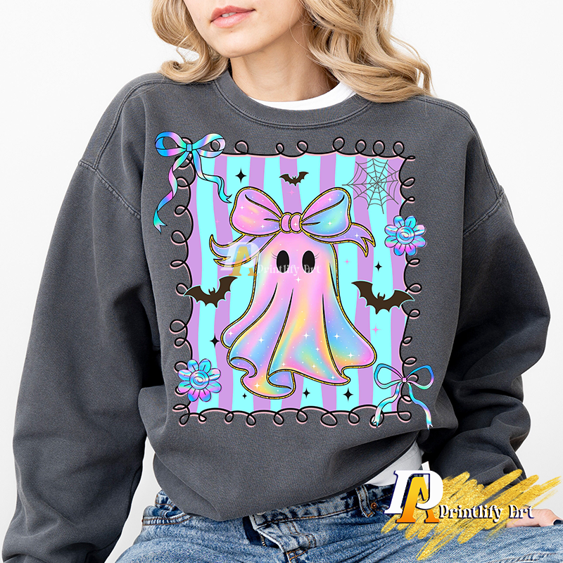 Iridescent Ghost Png, Preppy Coquette Halloween Shirt Design