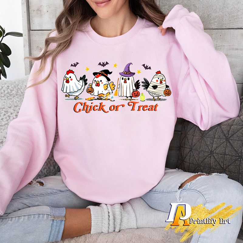 Chick Or Treat png, Funny Halloween Chicken Ghost Sublimation
