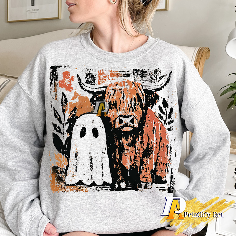 Cute Highland Cow Ghost png, Spooky Season Sublimation Design